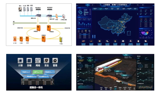 С помощью интеллектуальной платформы управления и контроля реализуются интеллектуальное планирование, интеллектуальная полностью механизированная добыча, интеллектуальная полностью механизированная добыча, интеллектуальная вентиляция, интеллектуальная транспортировка, интеллектуальный дренаж, интеллектуальное электроснабжение, интеллектуальная промывка и другие приложения угольных шахт.